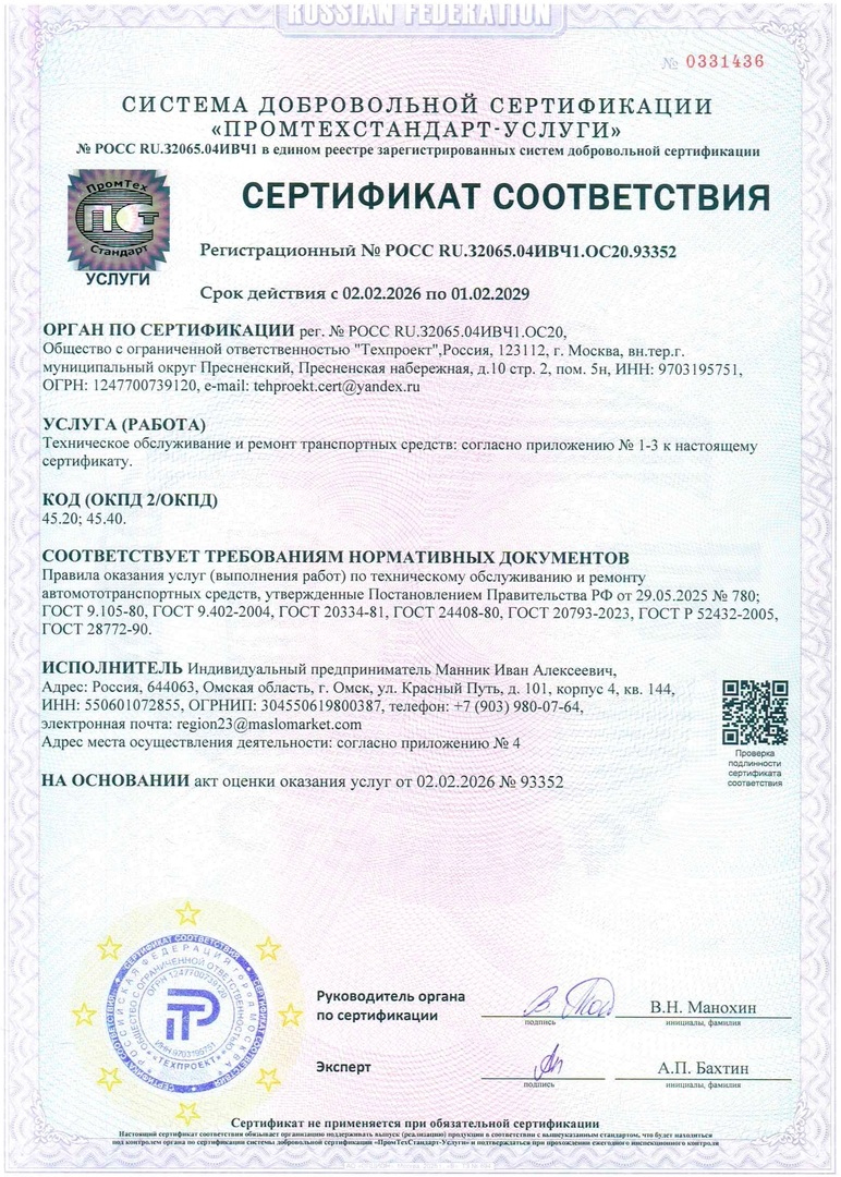 действует только при покупке масел в магазинах МаслоМаркет.